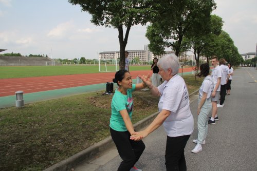 2016年9月22日,来自澳大利亚的留学生和我校大学生一起上了一堂特殊的体育课。通过对热身操《中国味道》、太极拳以及体育小游戏的学习,进一步了加深了留学生们对中国传统文化的了解,较好的实现了中外青年学生的交流与融合。在体育部陈丽英老师的精心组织和安排下,整个课程轻松活跃,给留学生们留下了一个美好的回忆!