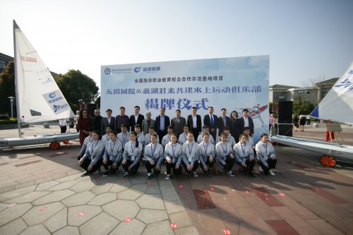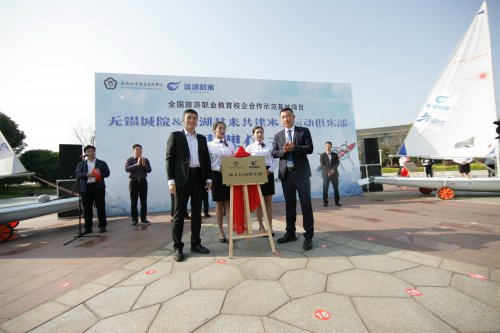 3月28日,无锡城院携手蠡湖君来文化体育发展有限公司共建全国旅游职业教育校企合作示范基地项目——“水上运动俱乐部”揭牌仪式在无锡城市职业技术学院隆重举行。揭牌仪式由体育部陆永宽同志主持,无锡市旅游局副局长柳永红,市体育局副局长汪克强,市文化旅游发展集团党委委员、工会主席王颋,无锡蠡湖君来文化体育发展有限公司董事长杨小飞、总经理陈同海,无锡城市职业技术学院院长张志祥、副院长瞿立新以及无锡市旅游业和体育界代表、城院师生代表共同参加了本次揭牌仪式。
