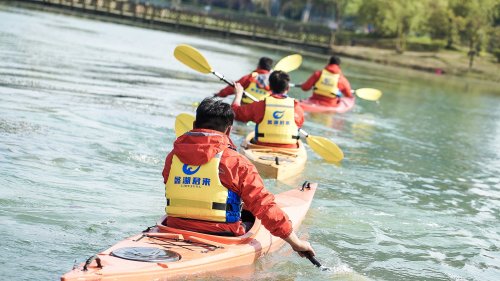 仪式现场,王颋主席与瞿立新副院长分别为“水上运动俱乐部”的成立致辞,他们指出,将充分利用校企双方的资源优势,联合培养体育旅游专门人才,大力打造蠡湖水上游品牌,助力无锡全民健身与体育旅游事业发展,不断丰富“旅游+”的内涵和外延,促进全域旅游发展。随后,柳永红副局长与张志祥院长为“全国旅游职业教育校企合作示范基地”揭牌;汪克强副局长与杨小飞董事长为“无锡城院&蠡湖君来水上运动俱乐部”揭牌;陈同海总经理与市体育运动学校副校长荣耀为20名俱乐部会员代表颁发会员证;会员们在俱乐部主席刘雪光老师带领下进行庄严宣誓。现场还安排了别开生面的皮划艇水上表演,极大地激发了与会者水上运动热情,大家纷纷表示此项活动新颖独特,兼具体育与休闲功能,十分愿意尝试体验。