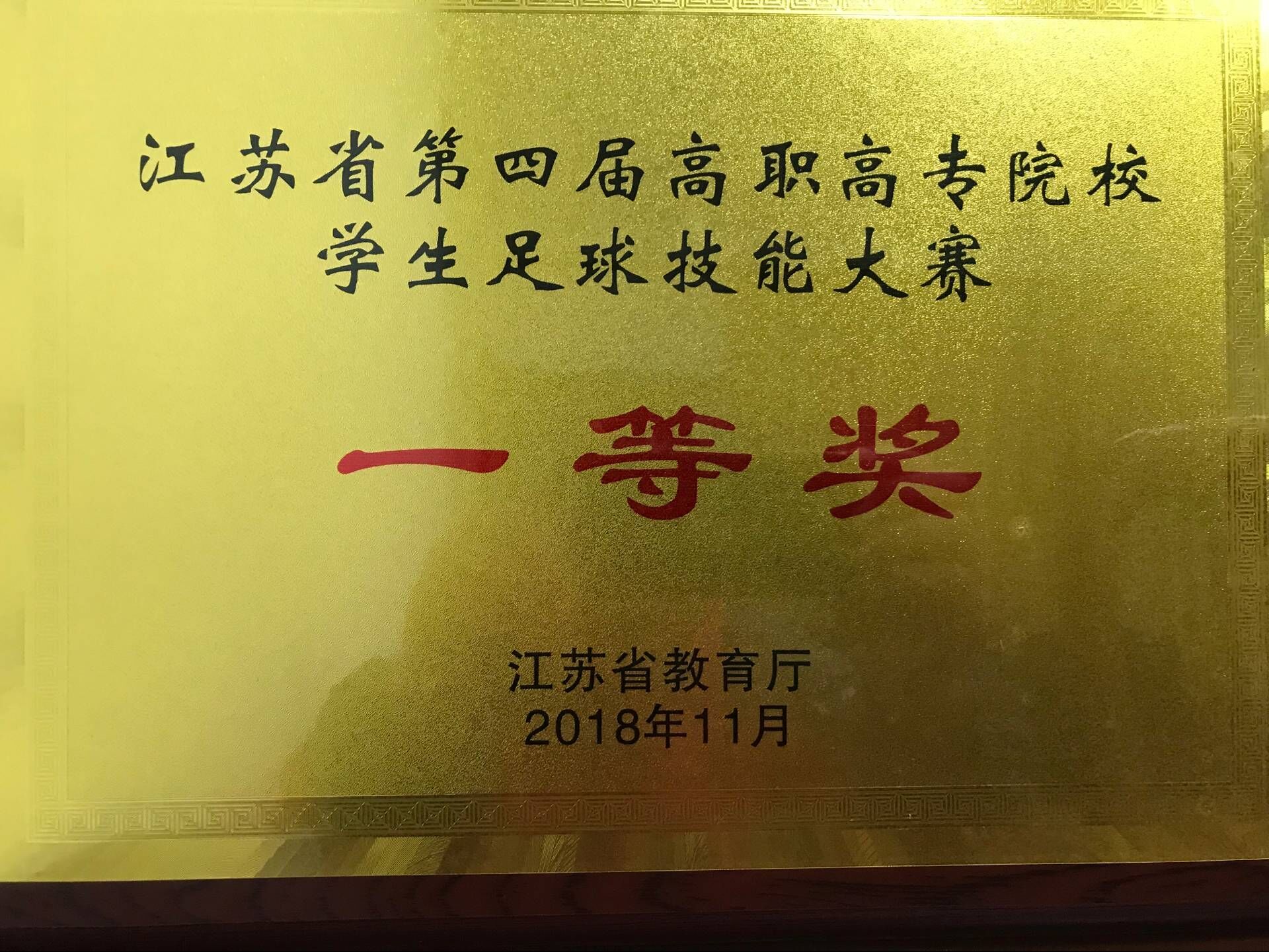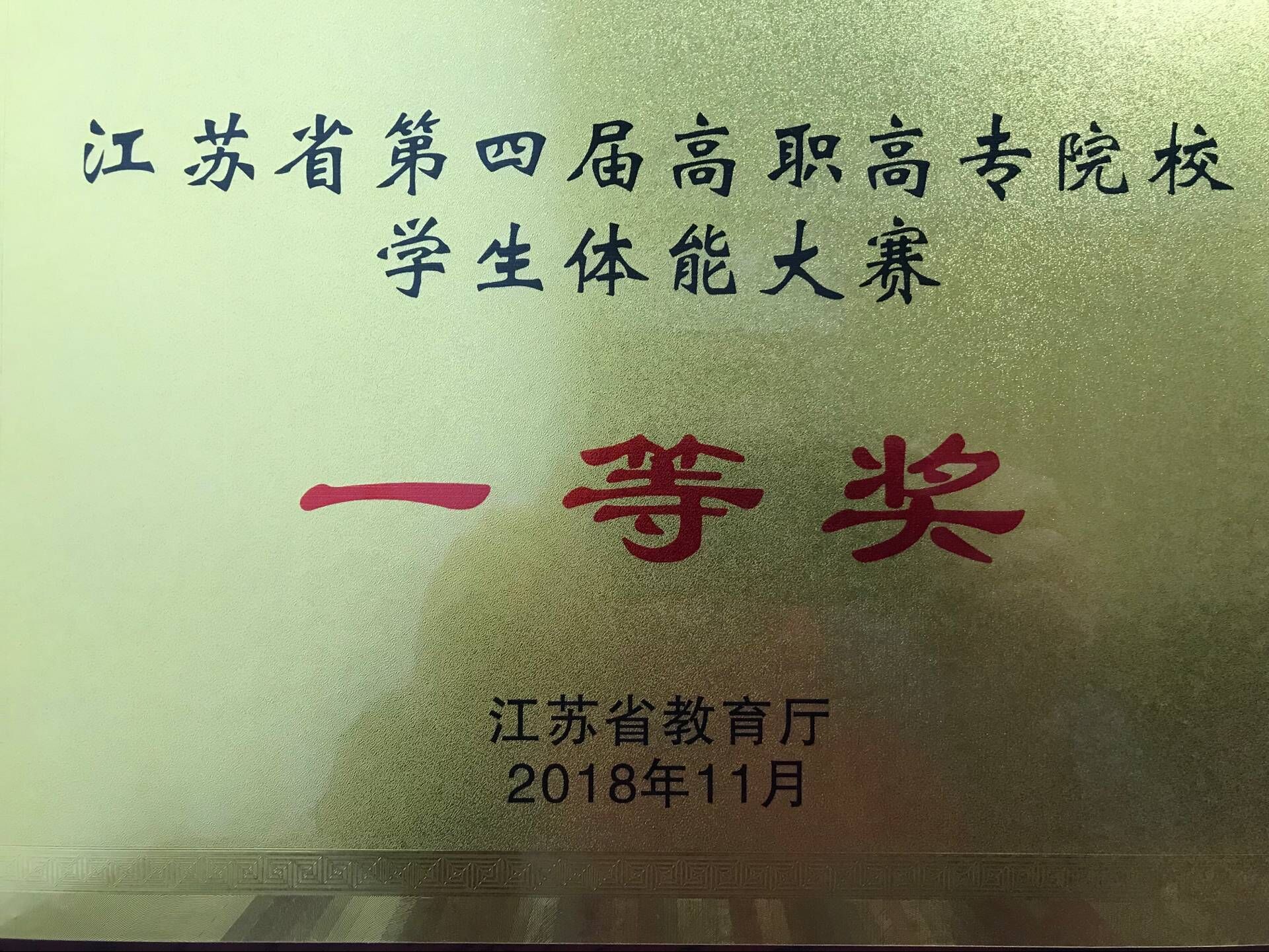 在刚刚结束的由教育厅主办,江苏省高职高专院校体育教学指导委员会、江苏省学生体协高校工作委员会和苏州职业技术学院承办的江苏省第四届高职高专院校学生足球技能暨体能大赛中,我院代表队不畏强手,顽强拼搏,以优异成绩双双获得一等奖;俞搏涵同学在全省两百多名选手中脱颖而出,以总成绩第二名获得大赛“足球技能全能王”称号,特此报喜! 体能一等奖奖牌足球技能一等奖奖牌领导颁发一等奖我院选手在领奖台上俞搏涵同学在领奖台上