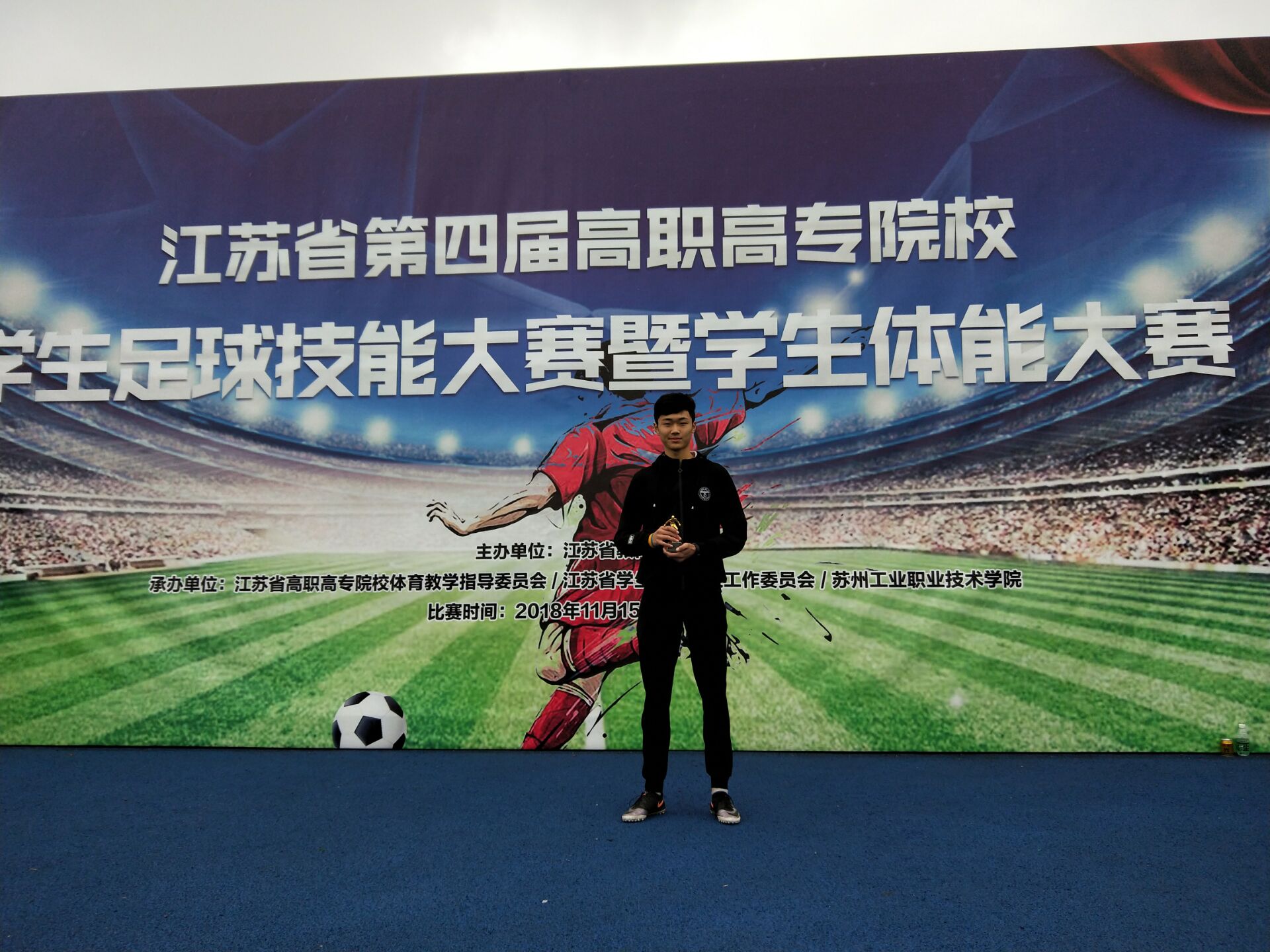 在刚刚结束的由教育厅主办,江苏省高职高专院校体育教学指导委员会、江苏省学生体协高校工作委员会和苏州职业技术学院承办的江苏省第四届高职高专院校学生足球技能暨体能大赛中,我院代表队不畏强手,顽强拼搏,以优异成绩双双获得一等奖;俞搏涵同学在全省两百多名选手中脱颖而出,以总成绩第二名获得大赛“足球技能全能王”称号,特此报喜!