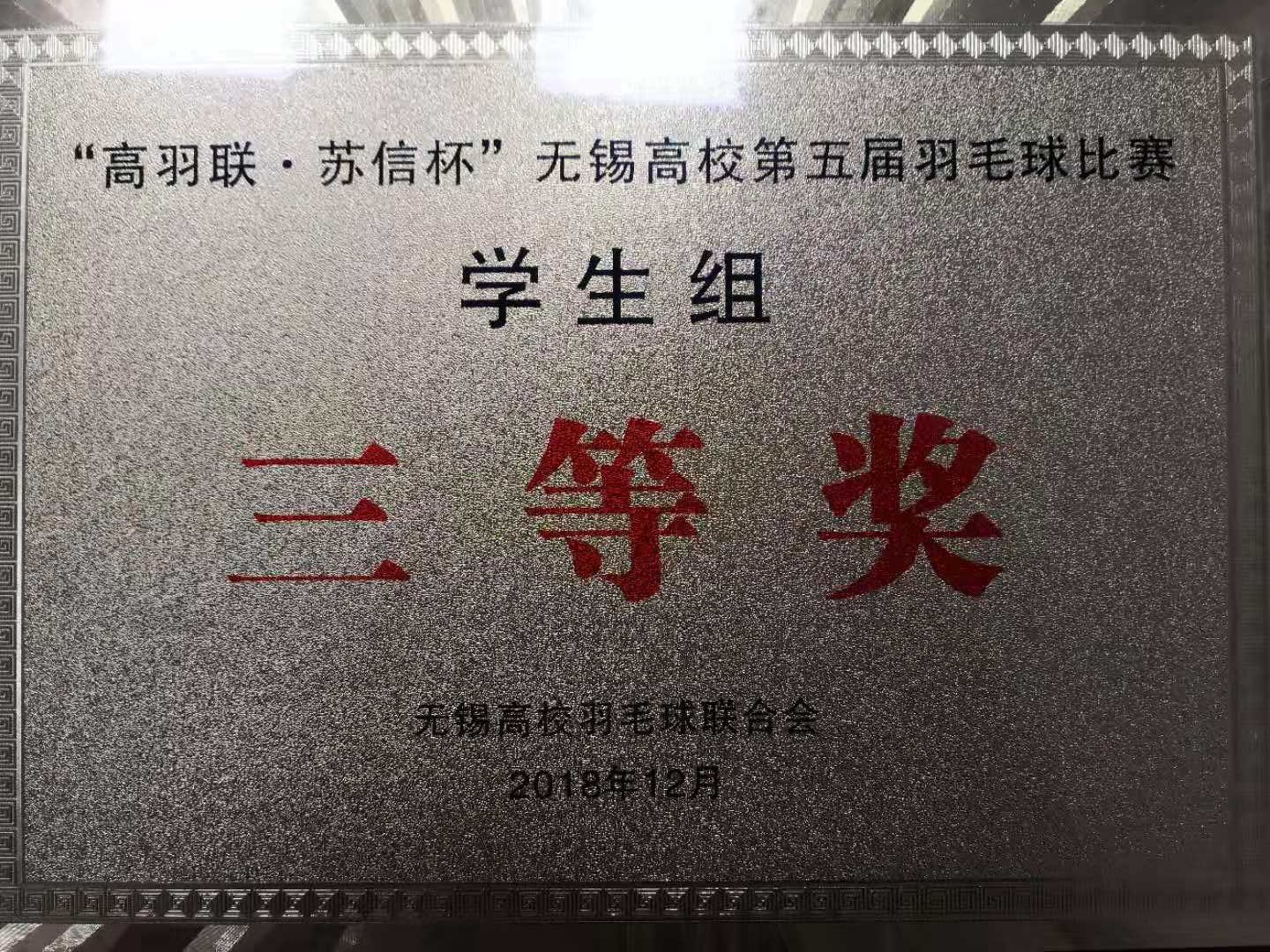 12月1日,在江苏信息职业技术学院新体育馆,我院师生羽毛球队在“高羽联·苏信杯”无锡高校第五届羽毛球比赛中,不畏强手,顽强拼搏,学生队取得三等奖,教师队取得二等奖的优异成绩。