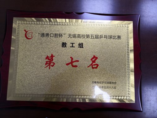 2018年5月18日,由无锡高校乒乓联合会主办的“通善口腔”杯无锡高校第五届乒乓球比赛在江南大学体育馆顺利进行。本次比赛设教工组和学生组两个组别,共有来自14所在锡高校参加了本次比赛。我院师生乒乓球队不畏强手,通过两轮的激烈角逐,教师组取得第七名,学生组取得第五名的佳绩。